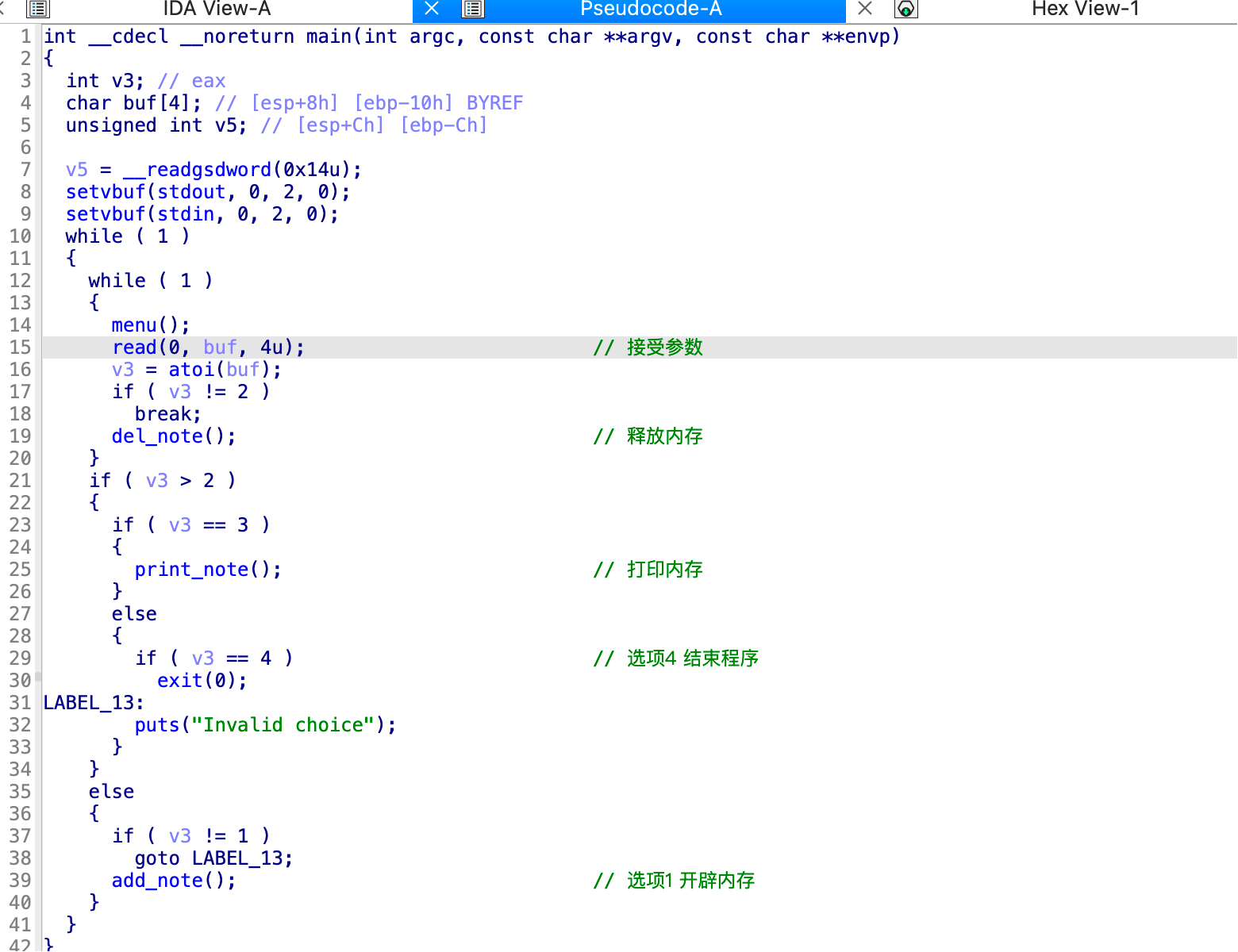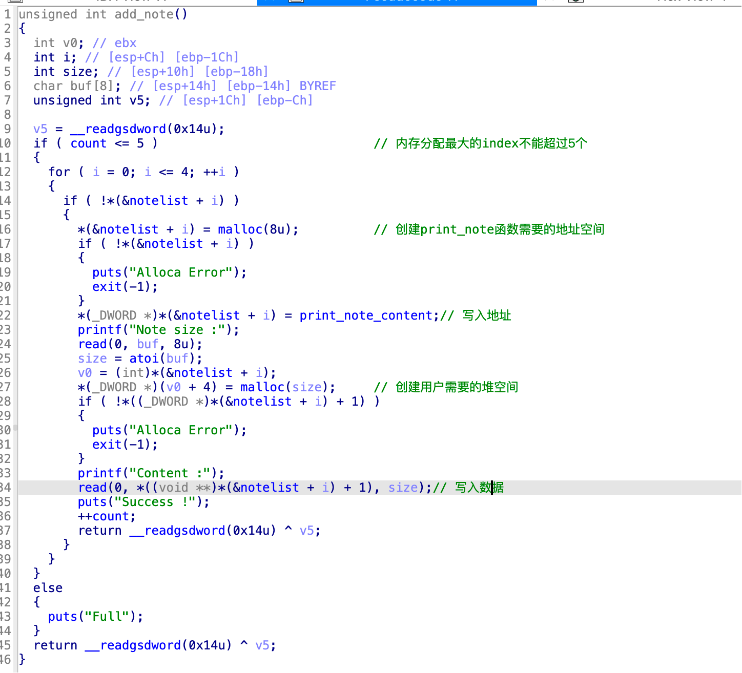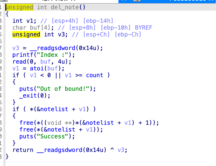 程序漏洞点就在del_note函数中,由于没有对释放的内存进行