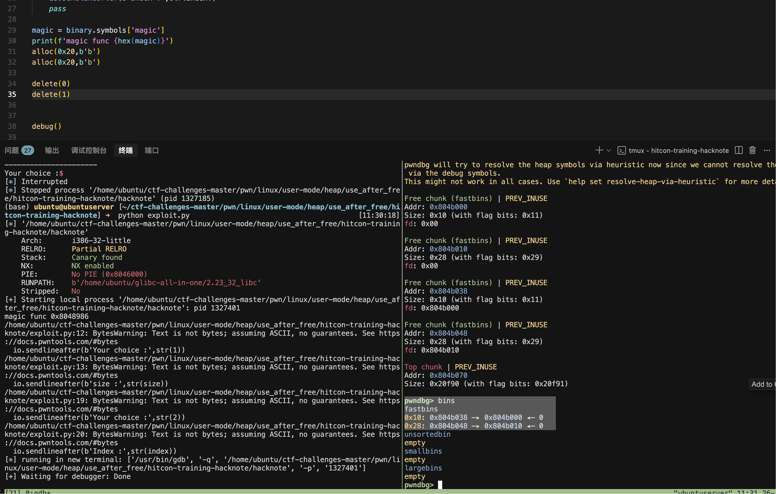 delete(0) #构造fastbins