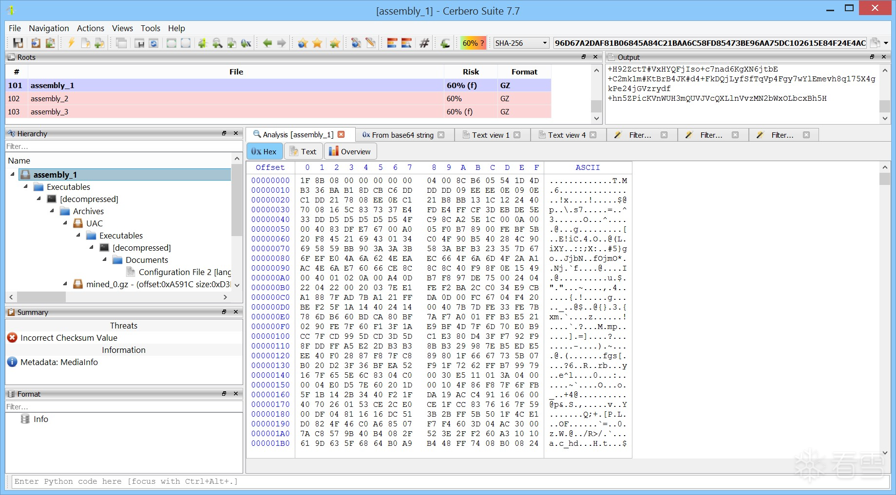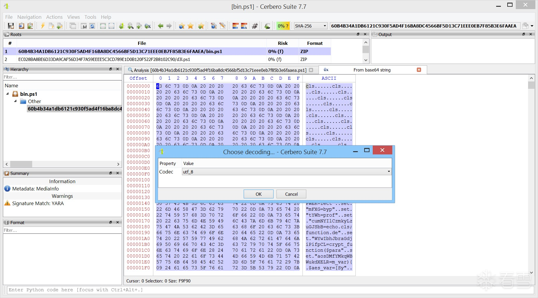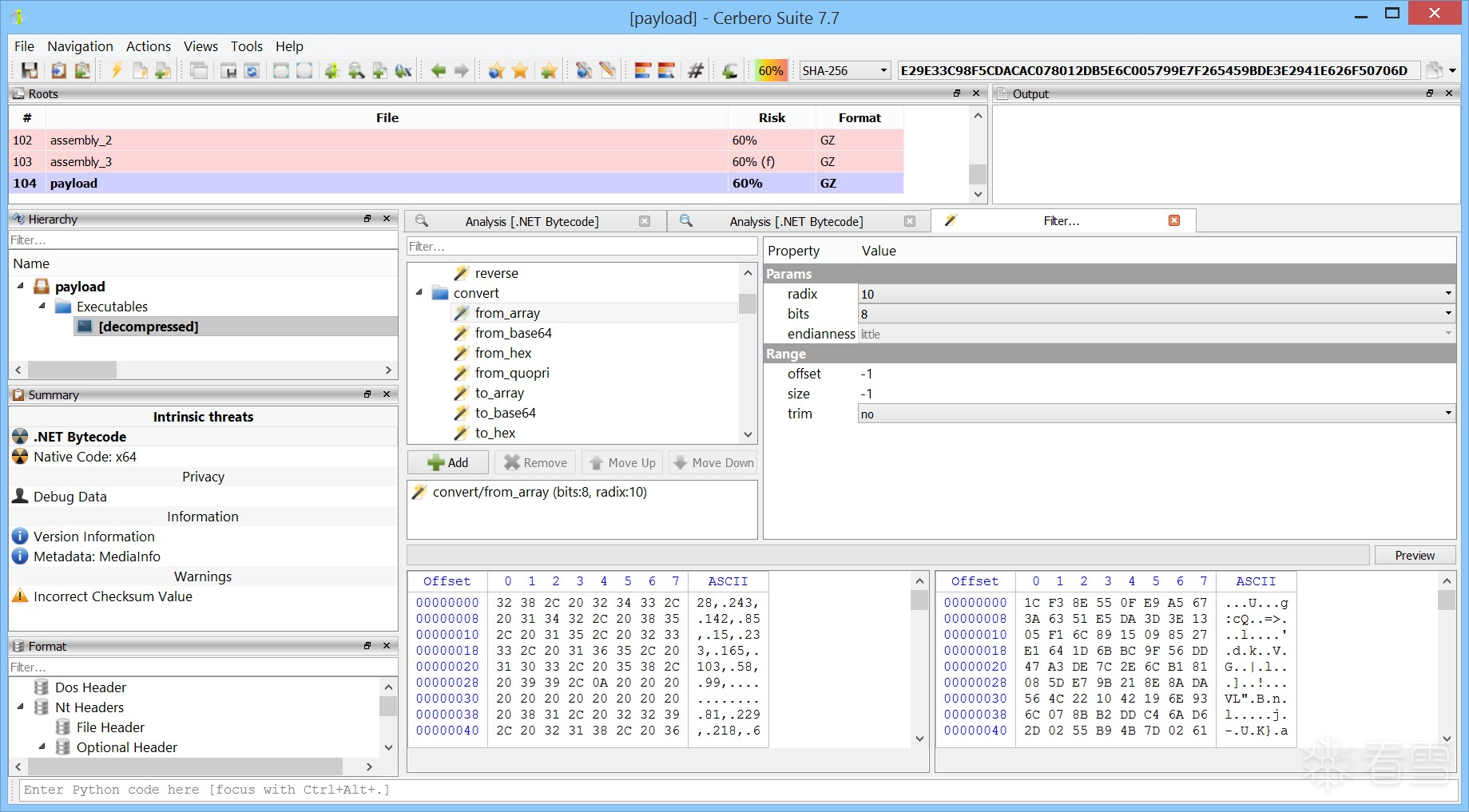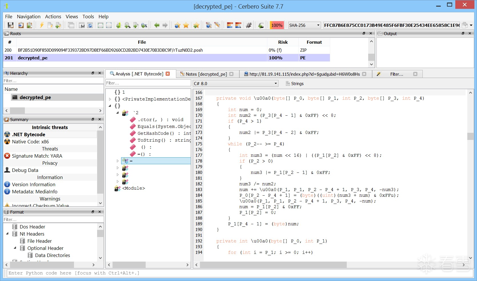 最终,您应成功获得解密后的载荷,其哈希值为:
