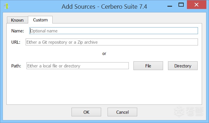 自定义源可以是本地文件、目录,或是指向 Git 仓库或 Zip 压缩包的远程 URL。