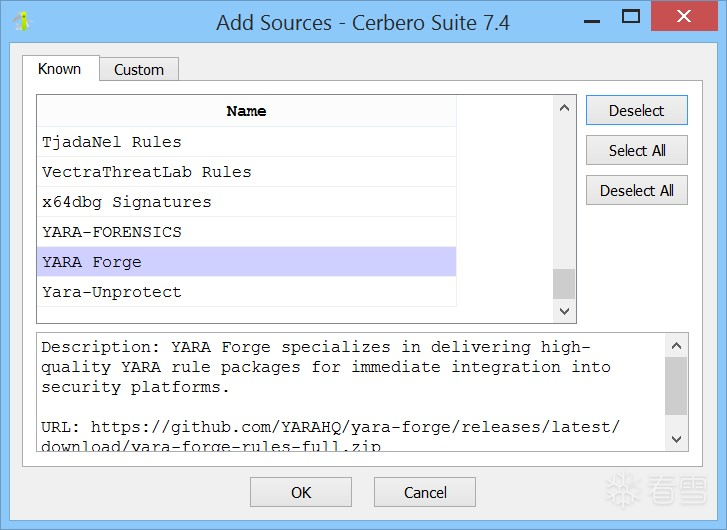 添加规则源时,您可以选择从已知的公共仓库列表中添加,也可以添加自定义源。