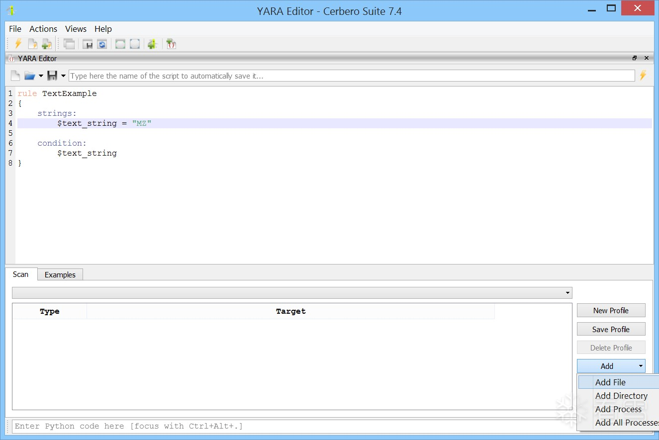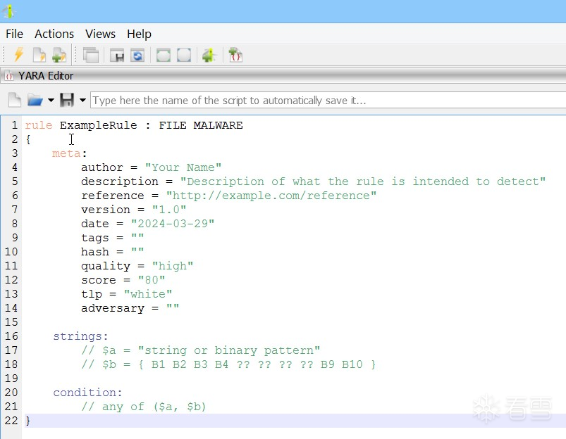 YARA 编辑器提供了一个全面的工作区,用于创建、编辑和测试 YARA 规则。