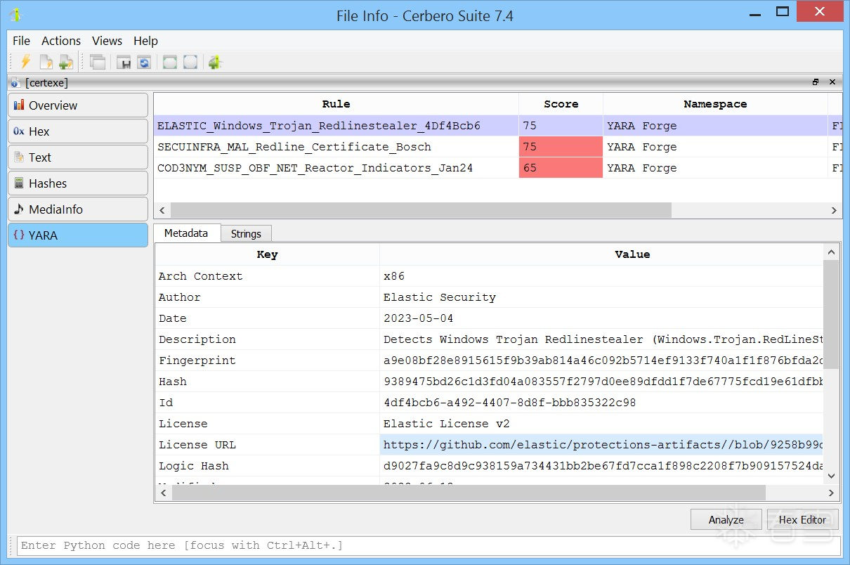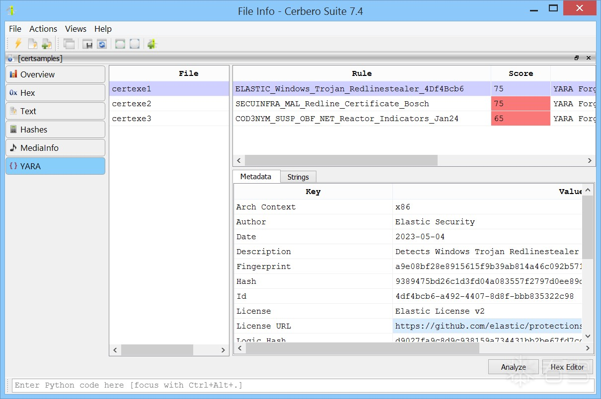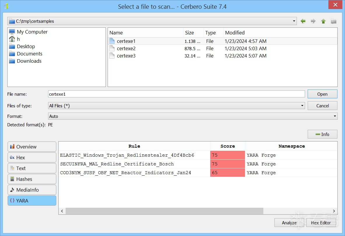 YARA 规则包的引入,标志着 Cerbero Suite 为网络安全专业人员提供的工具集得到了显著增强。我们期待您探索其各项功能,并衷心希望这一新工具能为您的网络安全与数字取证分析工作带来全新的能力与体验。