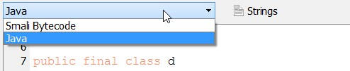 您可以通过顶部的下拉框在字节码视图和反编译视图之间切换。更便捷的方式是使用 Tab 键在两者之间切换——这将让您直接从反编译代码跳转到对应的字节码,反之亦然。