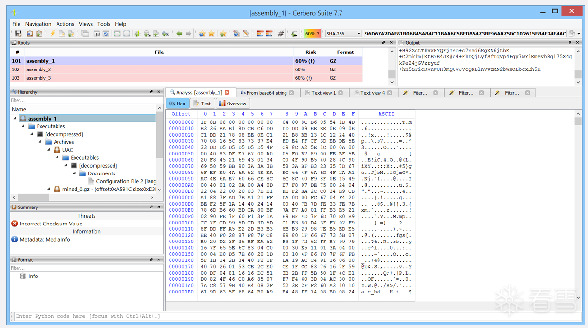 利用强大的 File Miner(文件矿工)包,我们让其自动扫描并提取出嵌入的 GZip 数据部分。