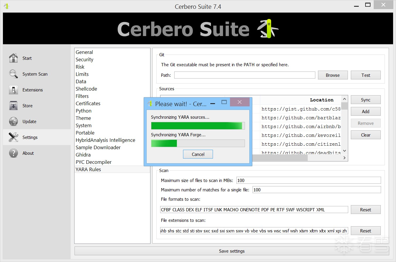 Cerbero Suite 的 YARA 规则包提供了一系列功能,旨在简化与 YARA 规则相关的工作流程。无论您是需要从公共仓库下载规则、扫描文件以查找匹配项、创建针对最新恶意软件威胁的定制规则、编辑现有规则以提高准确性,还是对规则进行严格测试以确保其有效性,该工具包都能满足您的需求。