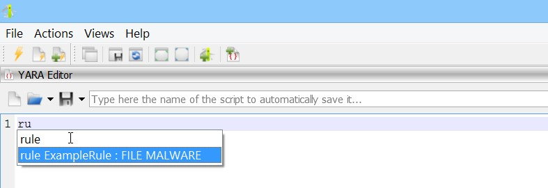 - “打开新 YARA 编辑器”操作:打开一个新的 YARA 编辑器窗口。