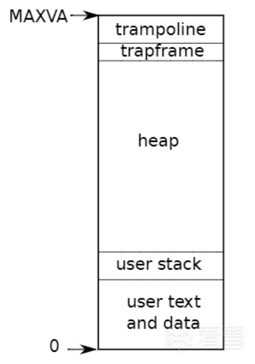 trampoline:其中存放 uservec 与 userret 的汇编代码,帮助从用户模式切换为内核模式或从内核模式返回到用户模式。内核与每个进程都将 trampoline 映射到同一虚拟地址上,使得页表从一个模式切换到另一个模式后,对 trampoline 虚拟地址的访问不会造成 page fault。参考:trampoline.S。