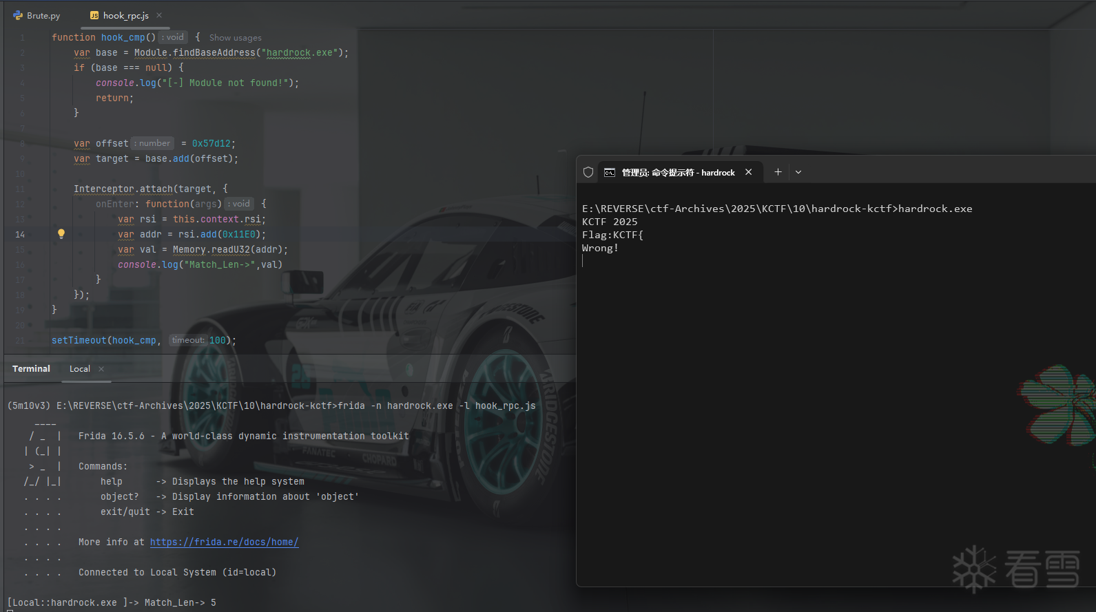 然后我们就可以利用subprocess+frida写个rpc脚本进行爆破,这个字符集是经过测试之后写的,差不多10分钟就可以爆破完。