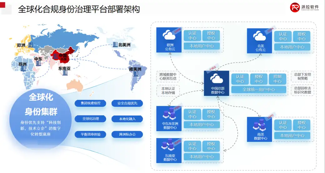 为确保企业跨境经营“稳态运行、合规可证”,有效应对上述“三项违法”,派拉软件全球化身份基座建设方案很早就给出了答案。