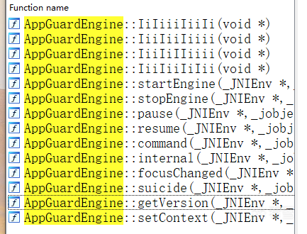 動態注冊了"com/inca/security/Native/AppGuardAssistantNative"、"com/inca/security/AppGuard/TestCase"中的一些JNI函數。