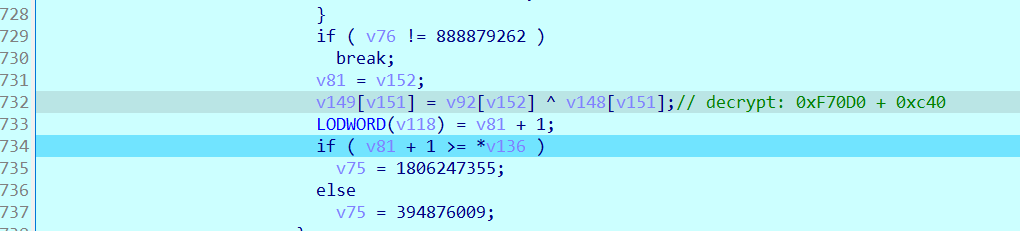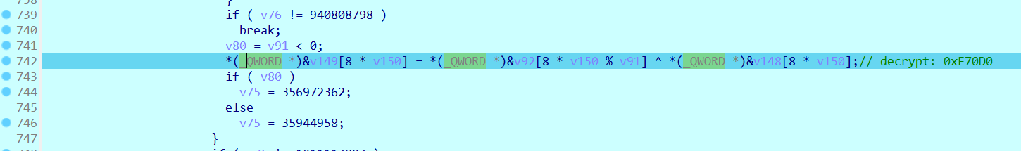 這個地方在解密一段代碼,把v144指向的地址減去基址,得到的偏移記為off。