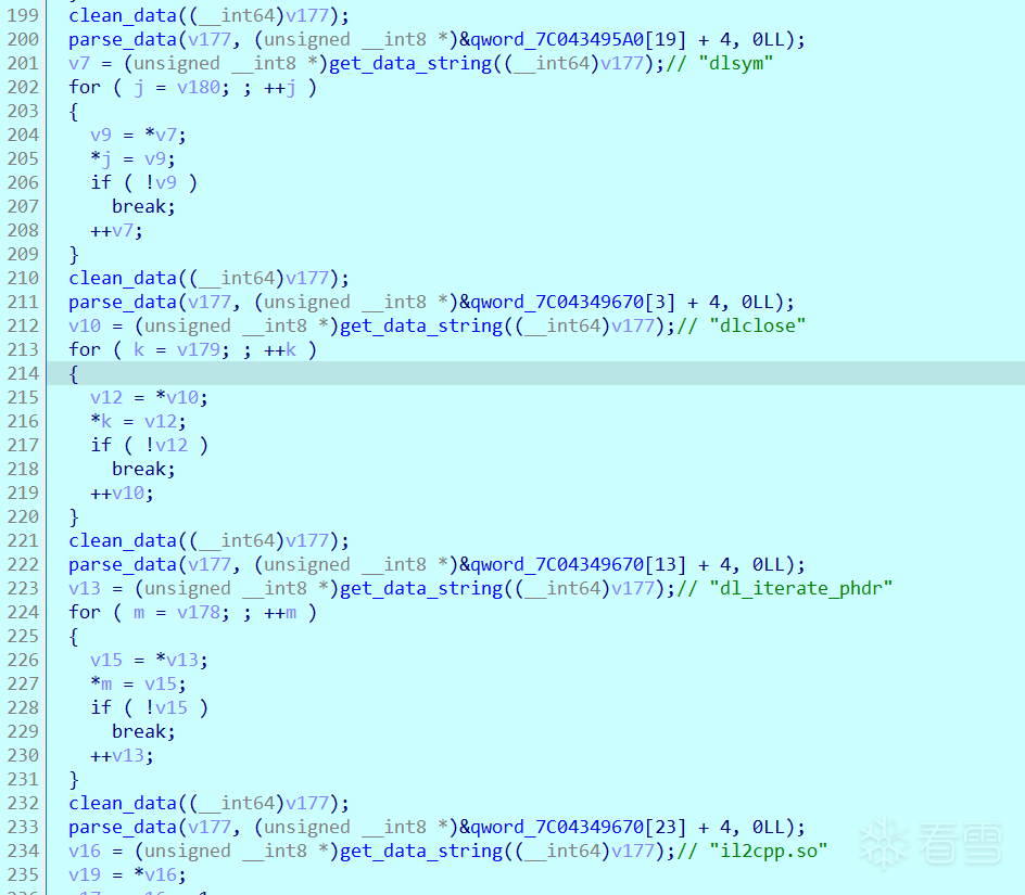 一開始解密了"dlopen"、"dlsym"、"il2cpp.so"等字符串,不知道干什麼。