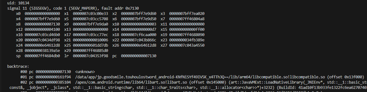 但報了SIGSEGV的錯,報錯時的PC在0x7130,十分奇怪。