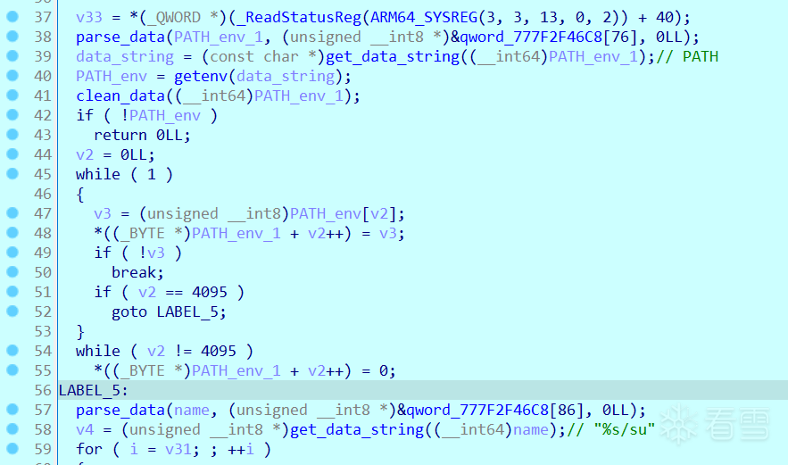 .init_array[0]中調用了unsetenv("LD_PRELOAD"),這大概是一種反注入的機制。unsetenv()還會再遍歷一次PATH環境變量,確保LD_PRELOAD真的被unset掉,否則會直接exit()。