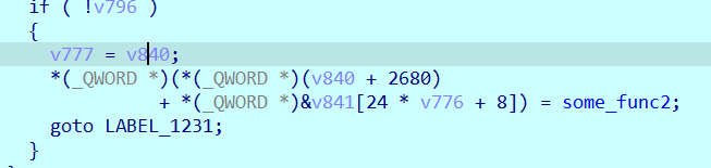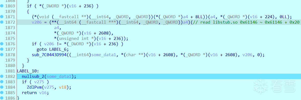然後會對比libstub.so的字符串表( 上面解密出來的那個 ),若包含上述的符號名,則會把對應函數( 如下圖的some_func2(),它是libcompatible.so的函數 )保存到某個地方。