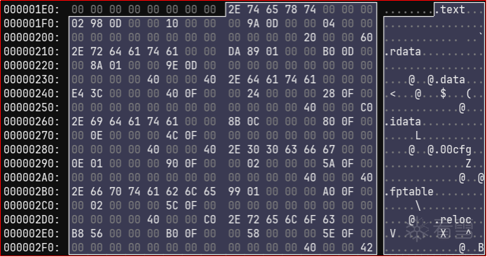 可选头末尾DataDirectory | 16 * 8 = 128 byte | |