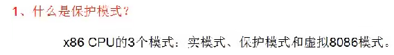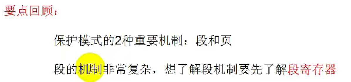 保护模式通过两种机制:1.段的机制。2.页的机制。通过上面两个机制来达到保护的目的,主要保护系统的数据结构如GDT表、IDT表还有一些关键的寄存器比如CR0寄存器。我们学习保护模式主要就是学习什么是段的机制,什么是页的机制,在后面学习的时候就称为段和页。