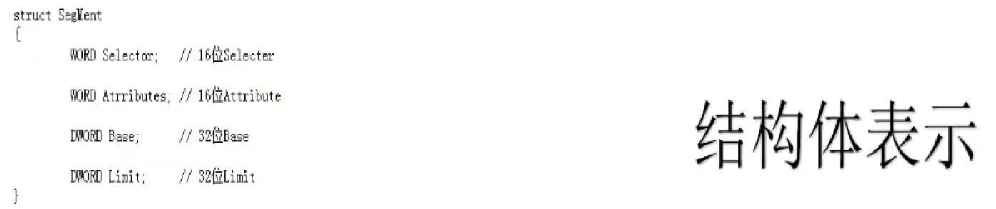 段寄存器的结构体表示如上图所示。我们到后面会慢慢解释,这里先提一嘴:这个16位的Attributes是属性的意思,表示当前的段寄存器是可都得、可写的还是可执行的;这个32位的Base指的是当前的段是从哪里开始的;这个32位的Limit指的是当前的段的整个长度有多少。