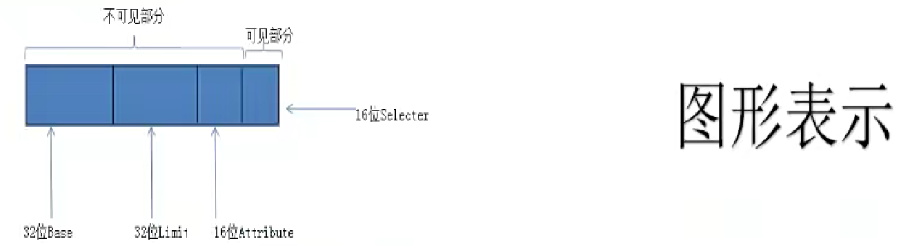 段寄存器的结构比较复杂,段寄存器是96位的,但是可见部分只有右边的16位,还有80位是不可见的,