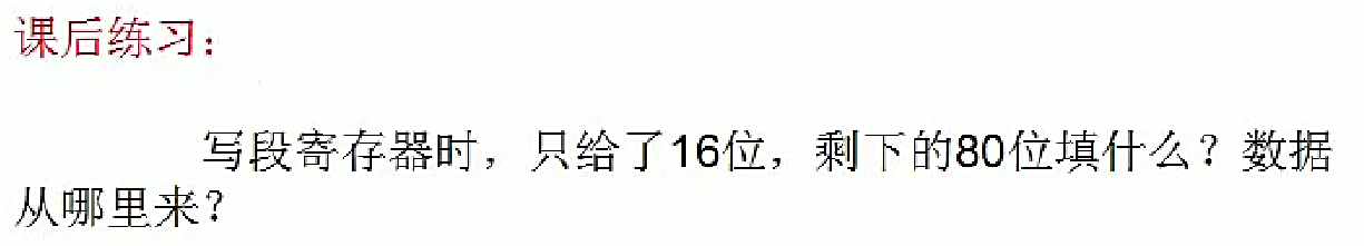 刚才在演示程序的时候可以看到写段寄存器的时候一直用的都是AX这样的十六位通用寄存器,那么请思考上述的问题。答案:
