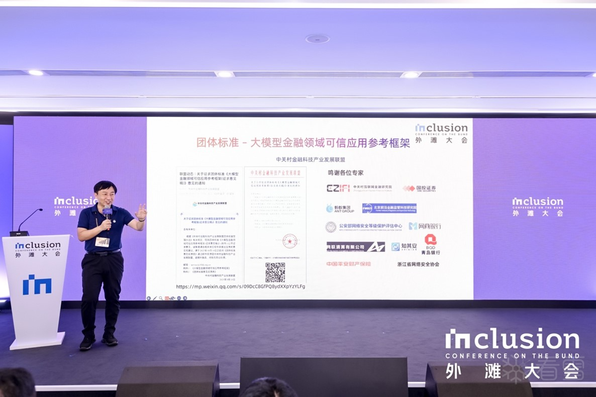 论坛上,蚂蚁集团副总裁兼首席技术安全官、蚂蚁密算科技有限公司董事长韦韬宣布了团体标准《大模型金融领域可信应用参考框架(征求意见稿)》正式启动意见征求的消息。该标准项目由蚂蚁科技集团股份有限公司牵头,联合公安部网络安全等级保护评估中心、浙江网商银行股份有限公司、国投证券股份有限公司、北京知其安科技有限公司、北京前沿金融监管科技研究院、浙江省网络空间安全协会、网联清算公司、青岛银行、兴业银行、上海第五空间信息科技研究院等机构共建。