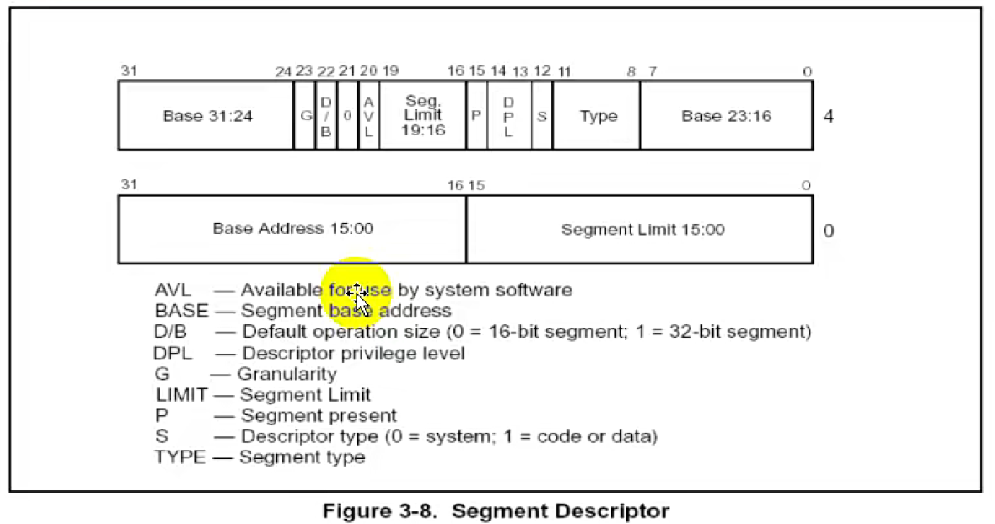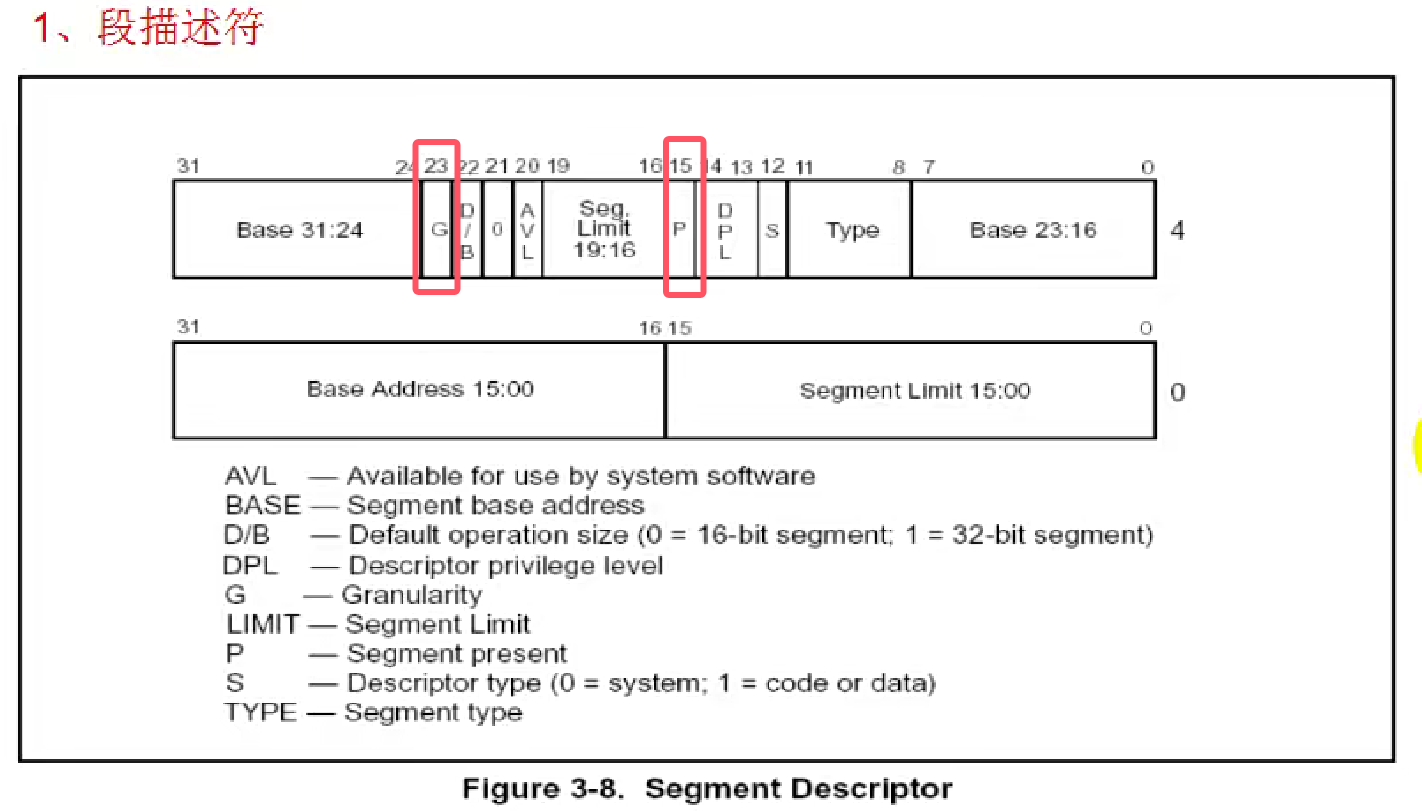 | Limit | 0xFFFFFFFF | G=1,LIMIT=0xFFFFF,扩展为32位 0xFFFFFFFF |