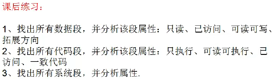 如果你以后遇到 type 字段是 0xA,就是代码段,可执行可读。如果是 0x2,就是数据段,可读可写,只要对照表填属性即可。