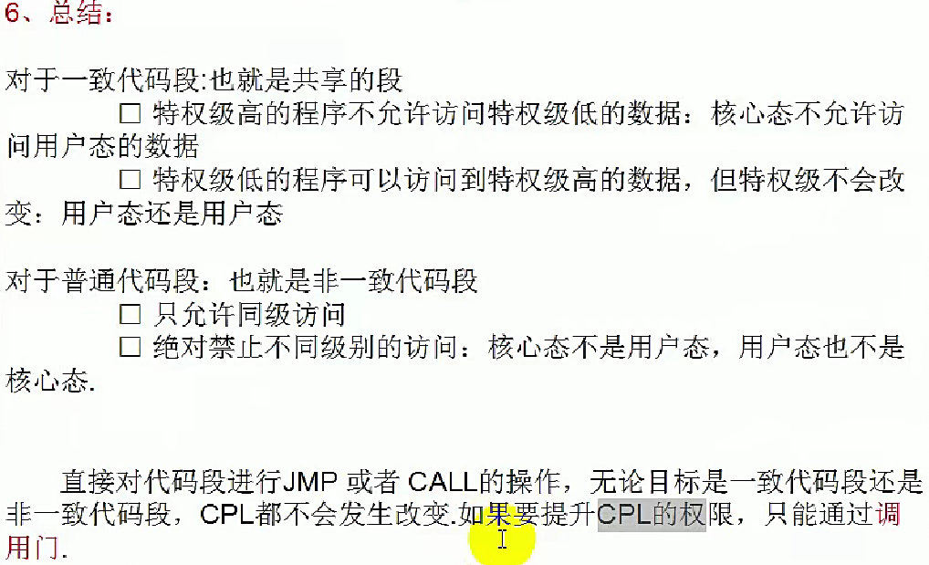- 还会确认段类型必须是“代码段”,且是否为一致代码段,执行相应的权限安全规则。