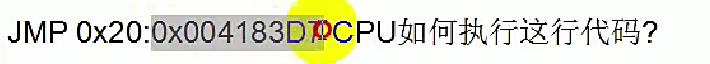 JMP 0x20:0x004183D 这是一个“远跳转”(JMP FAR),在x86保护模式下表示让CPU跳转到新的段(CS=0x20)和新的偏移地址(EIP=0x004183D)开始执行代码。