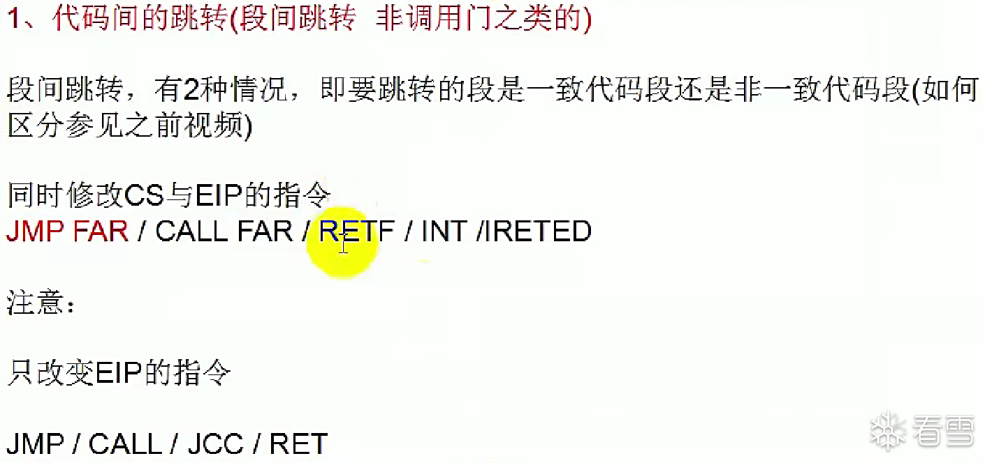 JMP FAR本质:不仅修改EIP,还要修改CS实现代码段的切换。这是“跨段跳转”。