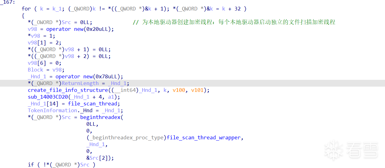 给扫描到的每个驱动器都分配线程执行目录扫描和加密任务