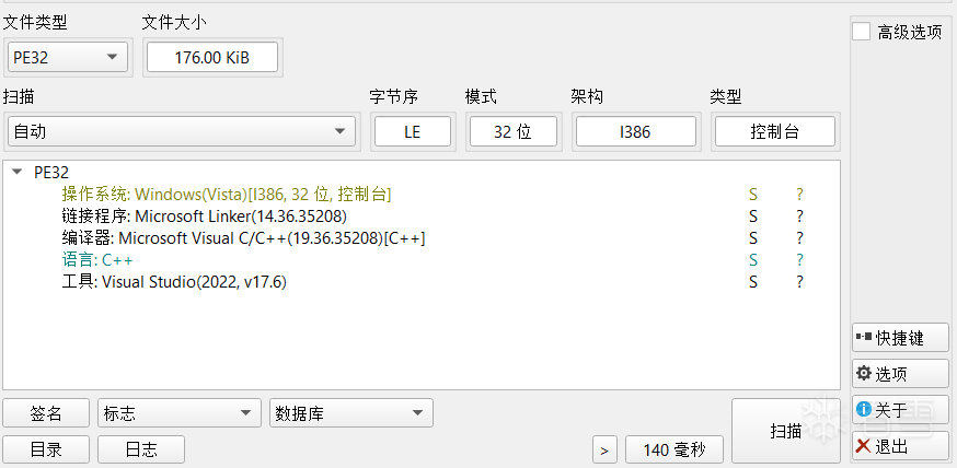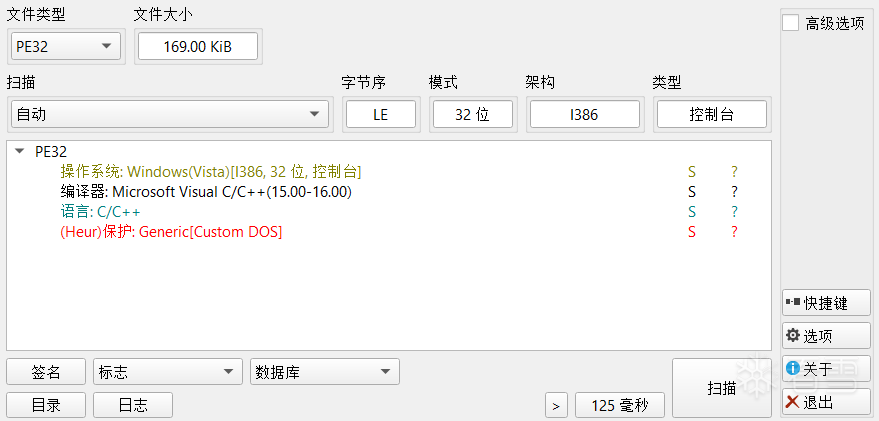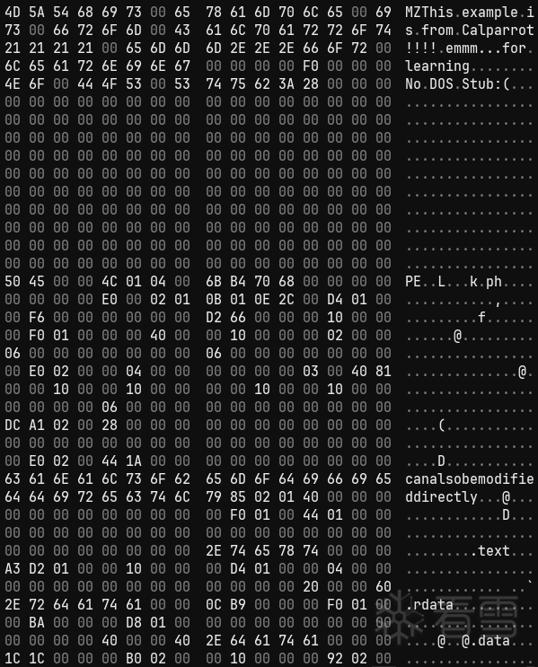 这个是我修改的一个Helloworld程序的头部(突然感觉能利用这个在程序里加一点彩蛋啥的),里面修改了一些执行中不需要依赖的值,所以尝试运行完全不会有问题,可以用工具扫描一下对比看看: