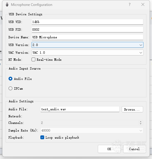 1,支持将一个视频文件或者音频文件虚拟成一个USB UAC麦克风.