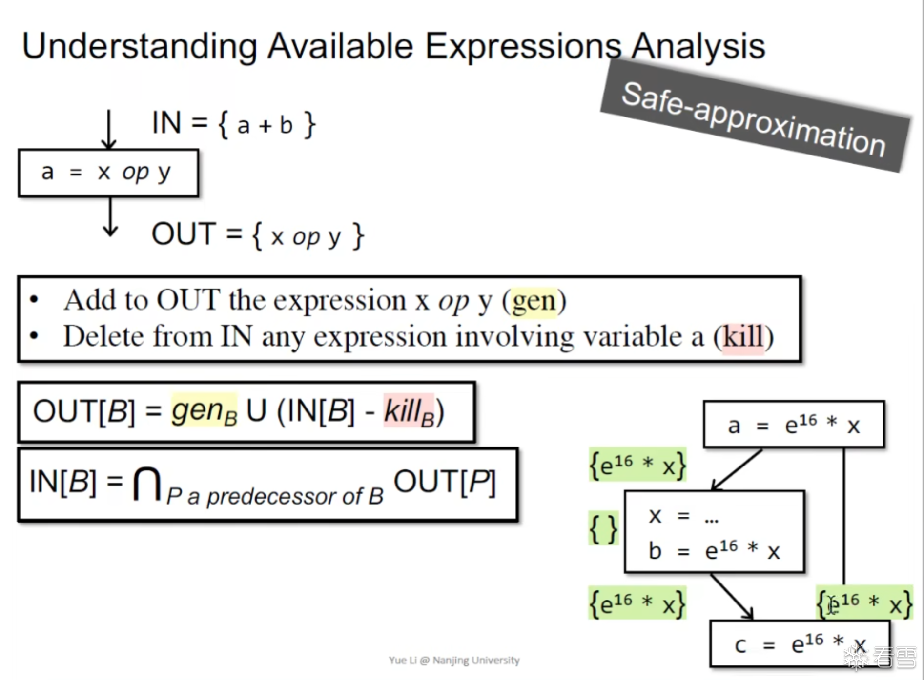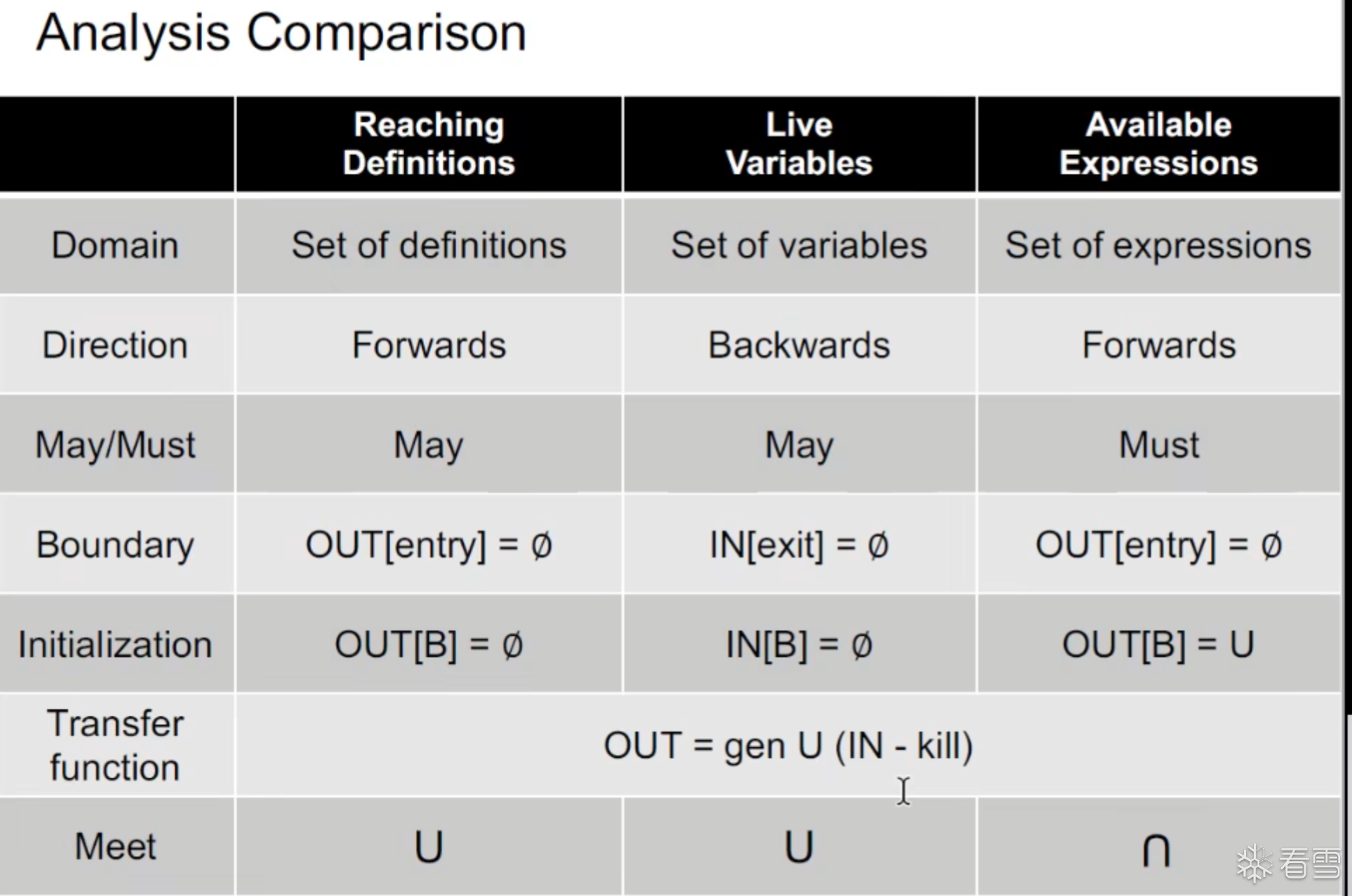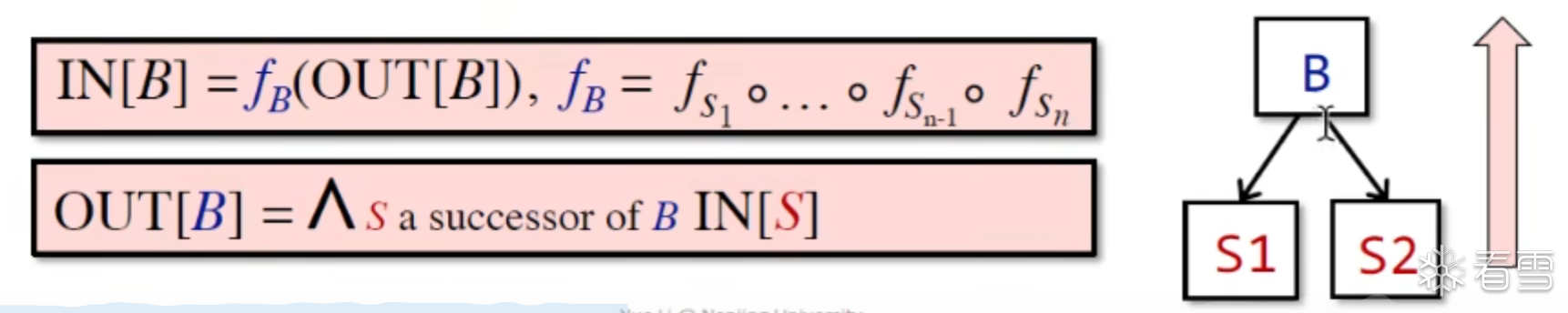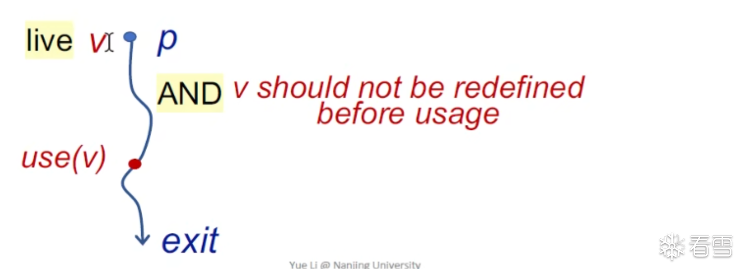 对于存活变量分析Backward 分析会更加直观方便。may-analysis,可以设置如下的公式