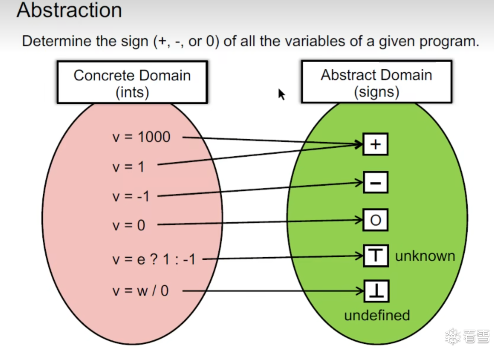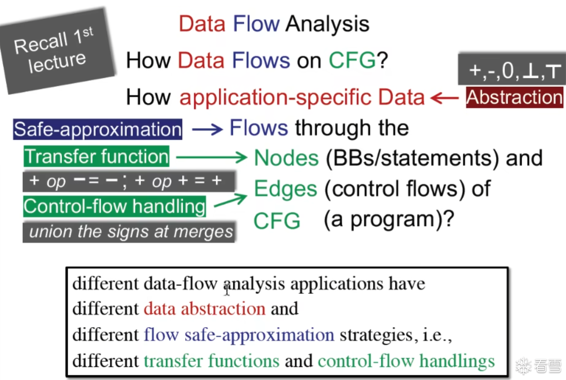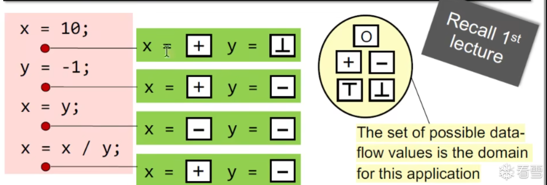 其中绿色为Data flow value 红色的部分的点是抽象的程序点,黄色的是 抽象符号的值域