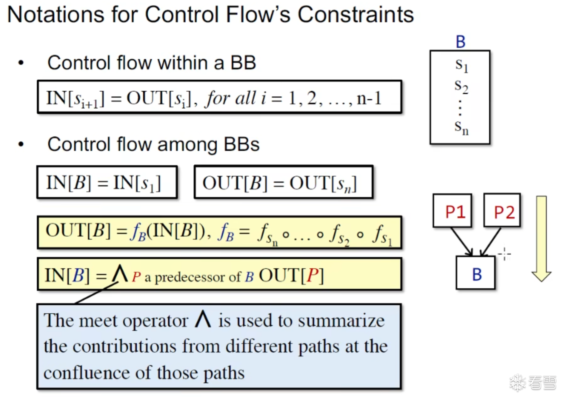 对于汇聚结构的B输入是由B的前驱^OUT[P],反向分析