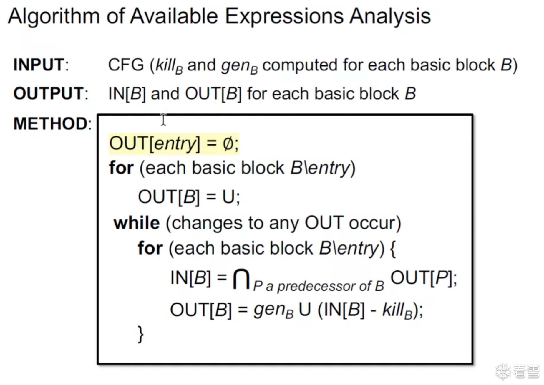 初始化 OUT[B] = phi 对于May Analysis 一般为空 , must Analysis 一般是 Top