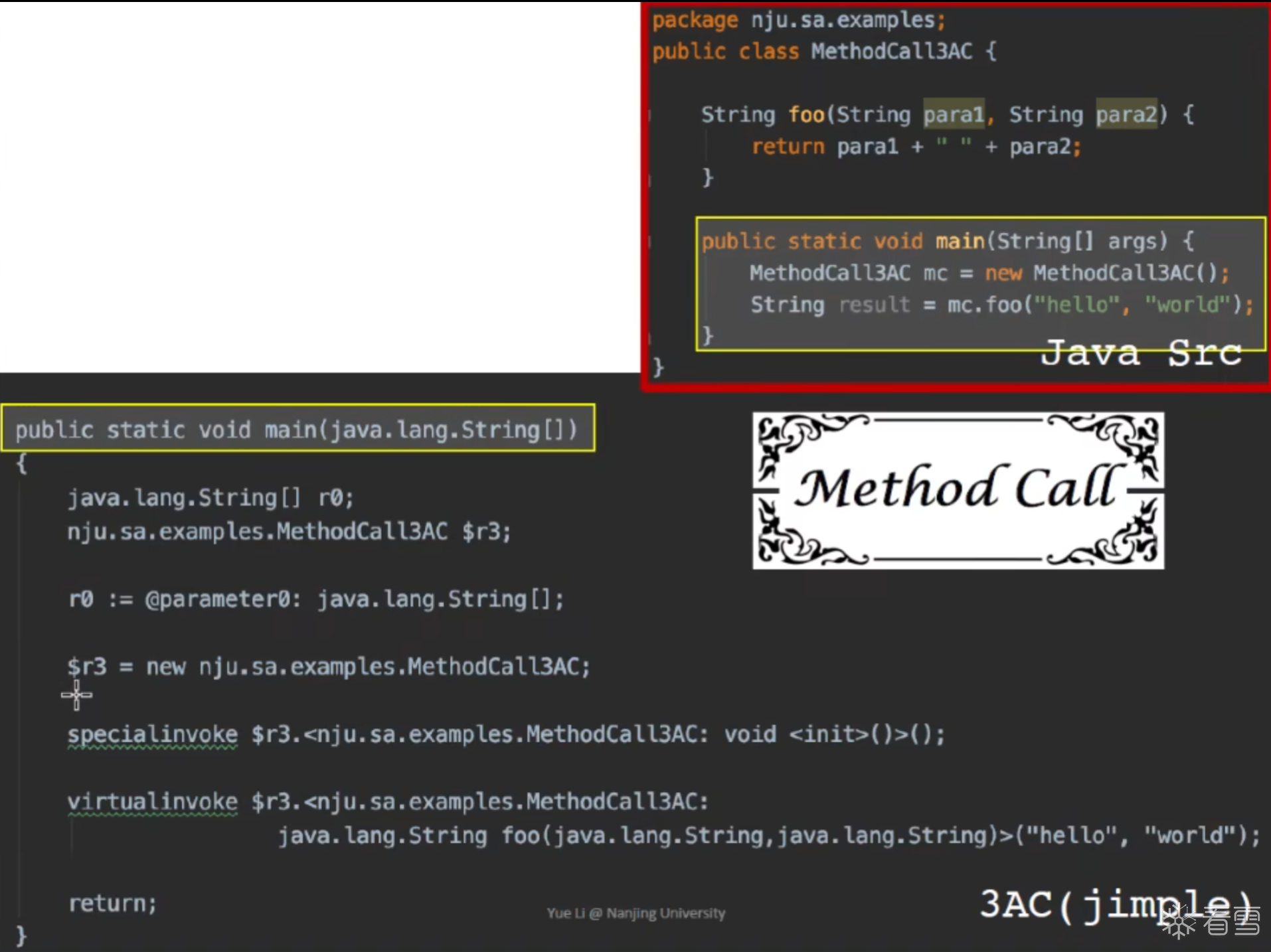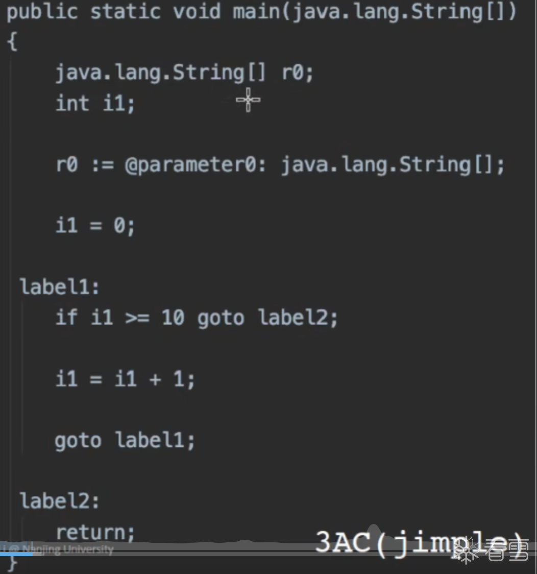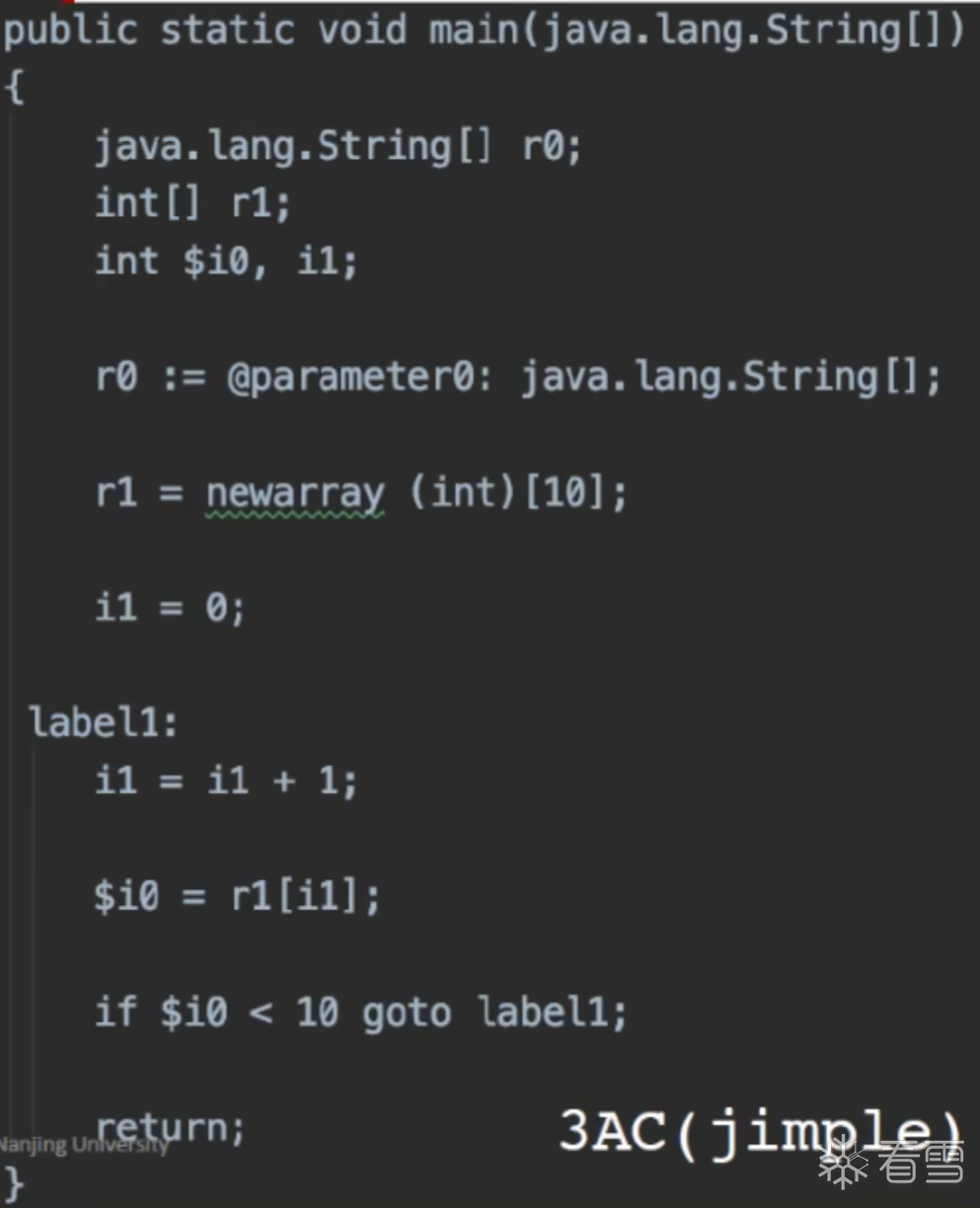 Soot的IR是 Jimple 是一个带有类型的3地址码: typed 3-address code