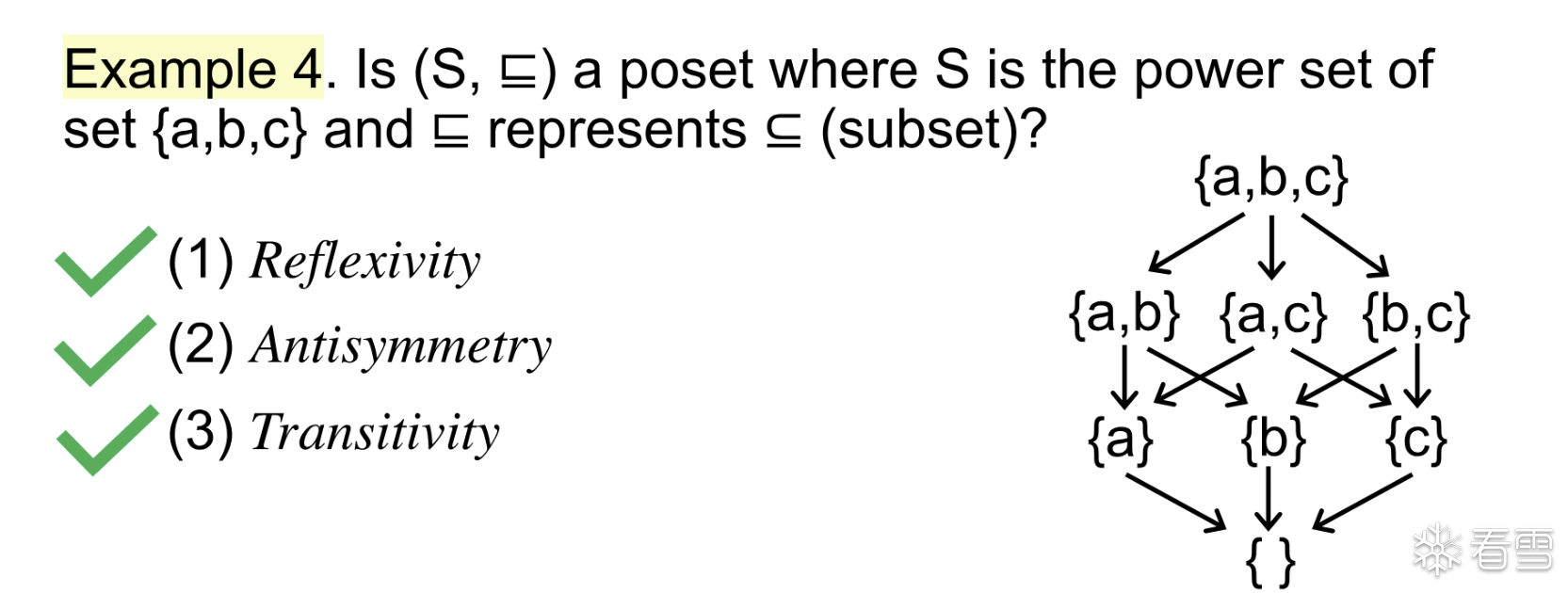 我们就称这个偏序关系和这个集合为 偏序集 (Partial Ordering) 简称poset
