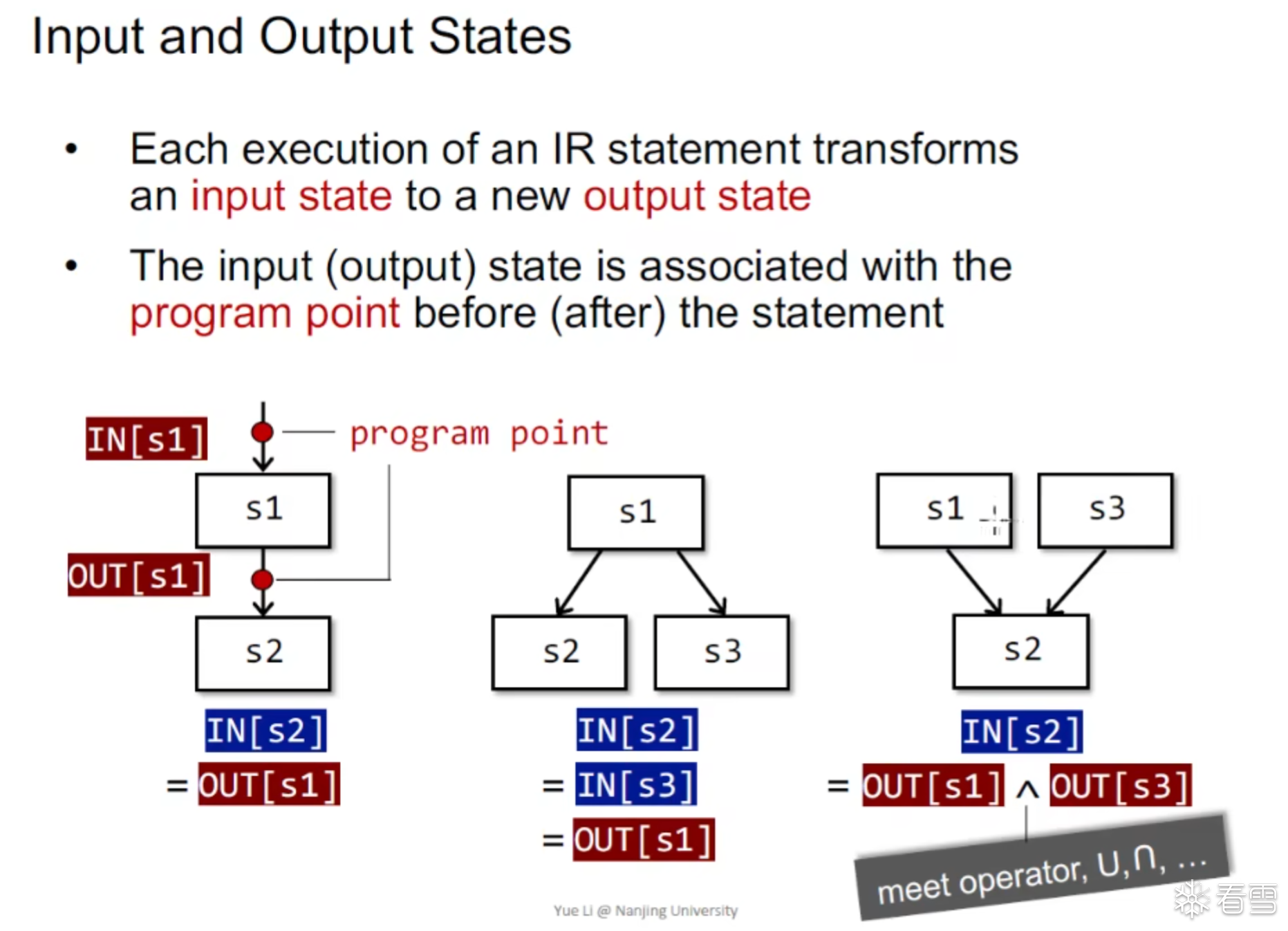 我们可以用IN[s1] OUT[s1]来表示 输入和输出的程序状态