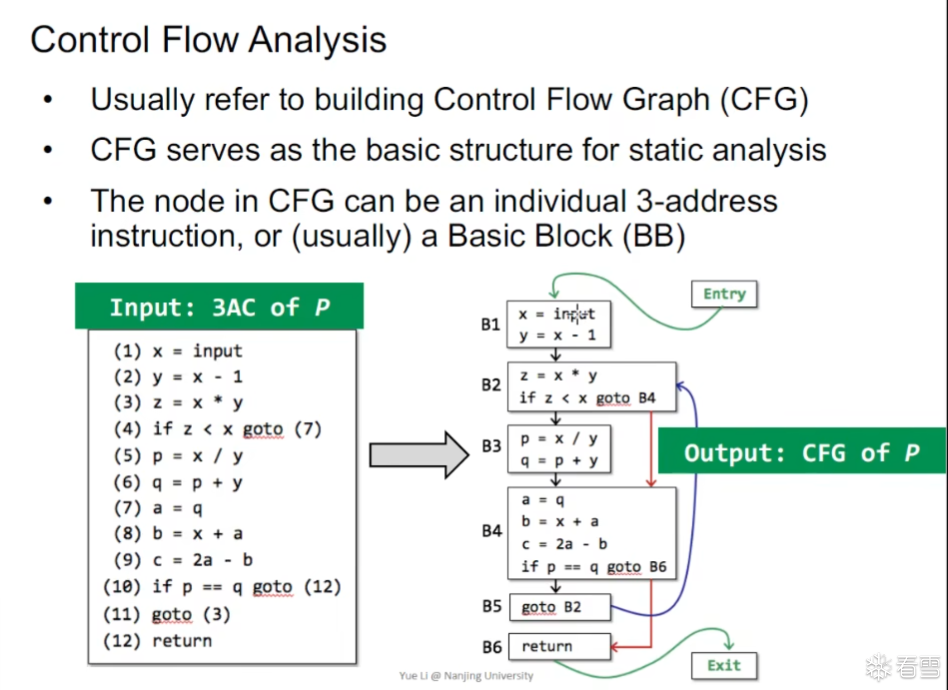 我们需要通过程序的三地址码生成对应的CFG,其中CFG是所有的 静态分析的基础。