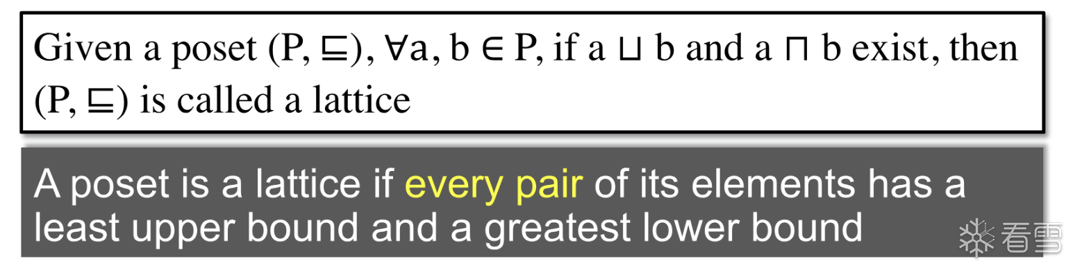 如果一个 poset 中的每一对元素都有 glb 和 lub 则称为格
