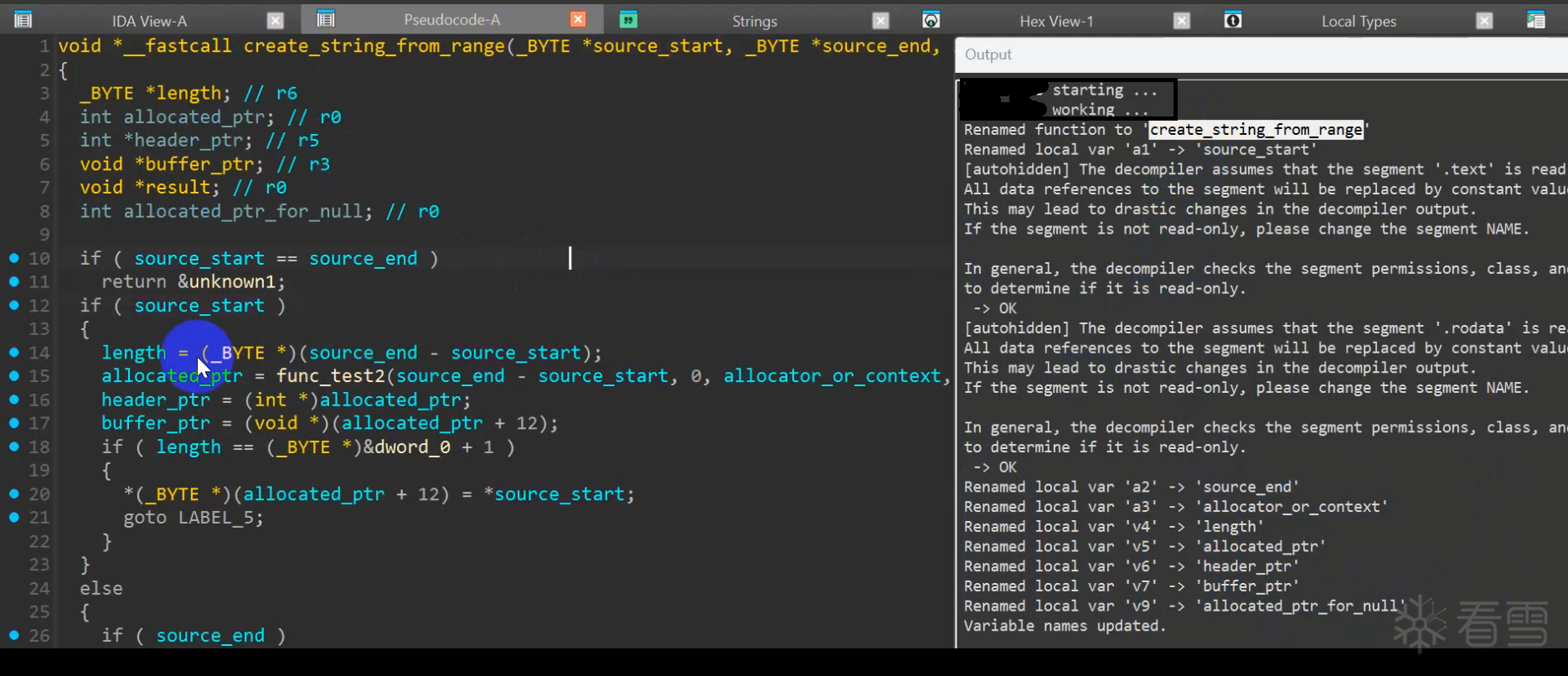 所以思路就来了:写个IDA PRO的插件,摁快捷键的时候,就提取当前函数的伪代码,发送给ChatGpt,让它建议函数以及每个变量都得改成什么比较好,然后插件拿到返回数据后,用IDA SDK自动更新变量名。
