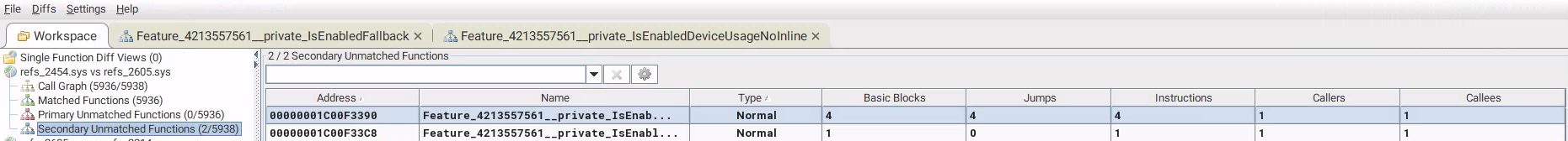 补丁版仅新增两个函数,模式特征符合 WIL(Windows Implementation Library) 风格的“特性开关”检测。微软通过加开关而非直接改旧逻辑的方式修复,便于回滚与分阶段放量。