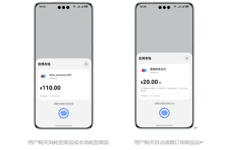 开发者可通过接入和使用IAP系统级API以及应用市场Server能力,快速启动数字商品交易流程,实现在应用内销售数字商品的功能和场景。通过应用内的数字商品交易,用户可以在开发者的应用内购买各种类型的数字商品,包括消耗型商品、非消耗型商品和自动续期订阅商品、非续期订阅商品等。