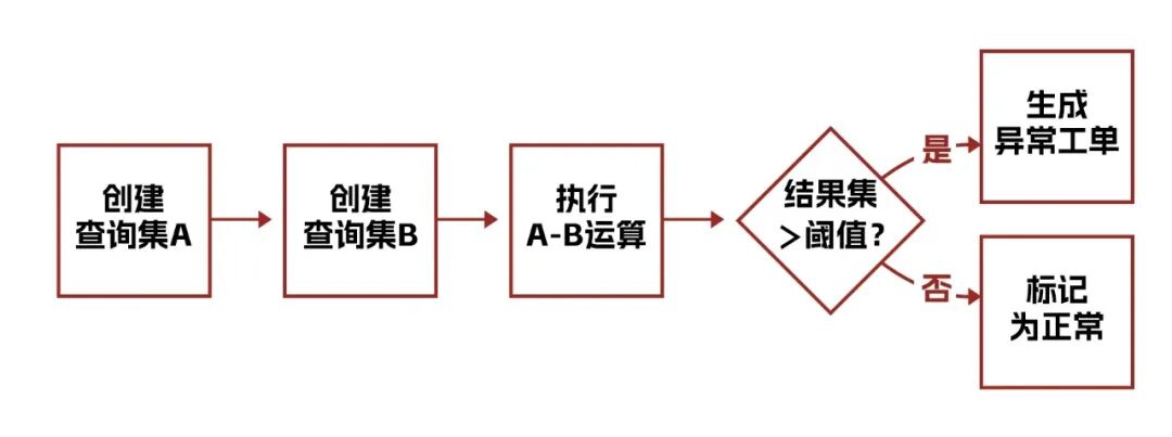 产品通过集合分析引擎技术、资产关联挖掘算法、数据缓存处理技术等方式,通过构建资产信息查询场景集合,并对多个场景的集合数据进行交、并、差等分析处理完成资产异常特征的挖掘及可视化展现。其主要数据处理流程如下图所示: