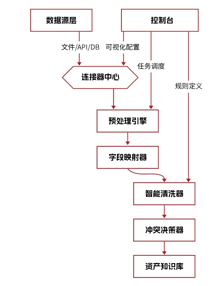 本场景面向企业异构资产数据源(CSV/Excel/API/数据库等),建立可视化ETL工作流平台,实现资产数据的“采-治-用”一体化治理闭环。